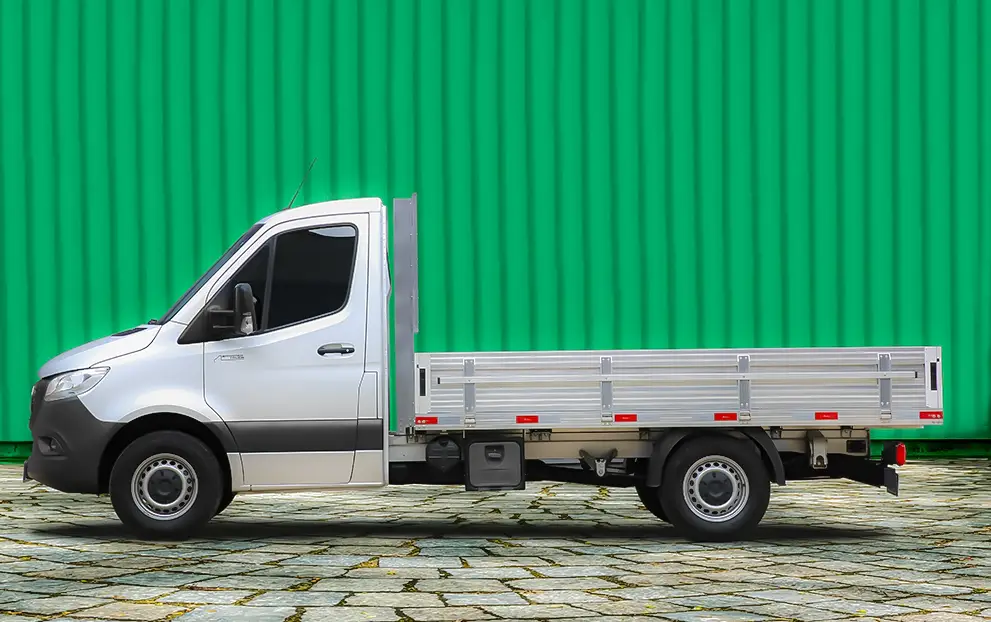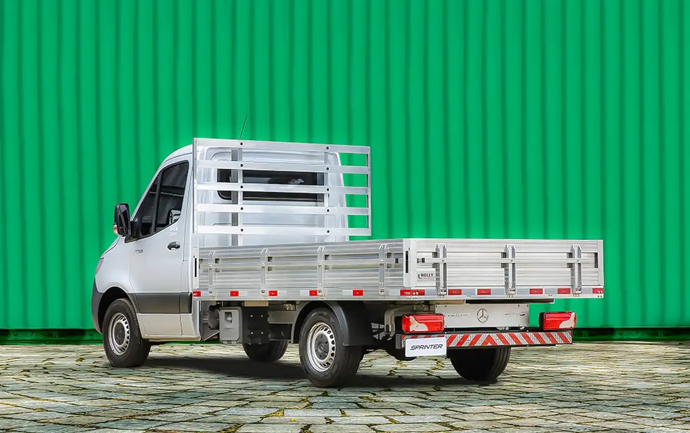 Rígido com molas parabólicas, amortecedores hidráulicos e barra estabilizadora